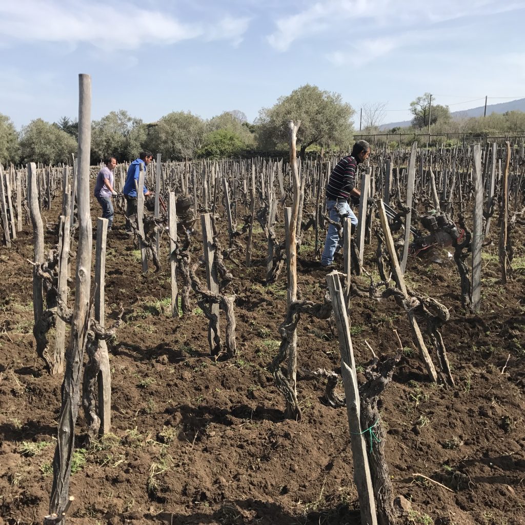 The vineyards of Ayunta, now several parcels spread throughout the top terroirs (namely the contrada of Calderara Sottana) around Randazzo on northern Etna, total 2.8 ha. The vineyards are populated mainly by very old vines. Every vine is different which is why Filippo does all his farming either by hand or small machine. He doesn’t use any chemicals in his vineyards, preferring to allow the natural vitality of the soil shine through in the wines. Yields are quite low: in a very good year he may get 40 hl/ha. Due to the altitude, 600-700+ meters, the harvest is late with the whites in early October and the reds in late October. The vines are planted mainly to Nerello Mascalese but interspersed throughout those vines are Nerello Cappuccio, Carricante and Cataratto, as well as nearly extinct varieties such as Minnella Bianca and Minnella Nera. To make a white wine here is a Herculean effort. Vines of the white grapes are stray among the reds, and, as such, he has map out and track the development of many individual vines to pick at optimal ripeness early in the morning. The soil here is “ripiddu”, the local name for lapillus (a small black volcanic rock) and ash. Etna, a very active volcano, gives new soil during every eruption, a very rare occurrence that defines the unique minerality of Etna wines.