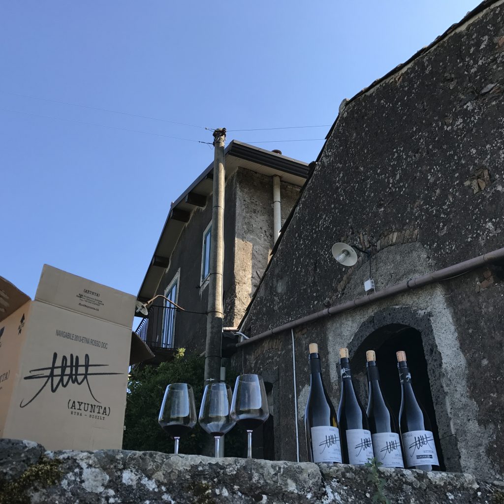 Growing up in Agrigento on Sicily’s southern coast, Filippo Mangione had winemaking in his blood. For generations his family tended vines and made wine in their palmento until his grandfather passed away in the sixties. The vineyards and building were sold off; leaving his family without an estate. After university, he dove headfirst into the world of wine: working as a waiter, sommelier, journalist, and sales/export in both the US and the UK. The more he worked selling other peoples’ wines, the more he felt the pull to revive his family’s legacy and re-establish an estate of his own. In 2011, after months of visiting and walking the slopes of Etna, Filippo happened to meet the old owner of a nearly abandoned vineyard in Calderara Sottana planted in the early 1900s behind a grove of chesnut trees. Too old to work the vineyards any longer, he was thrilled that Filippo wanted to continue his work, telling him “Take it. Don’t let this vineyard die.” Filippo spent his life savings to buy that vineyard and Ayunta was born.