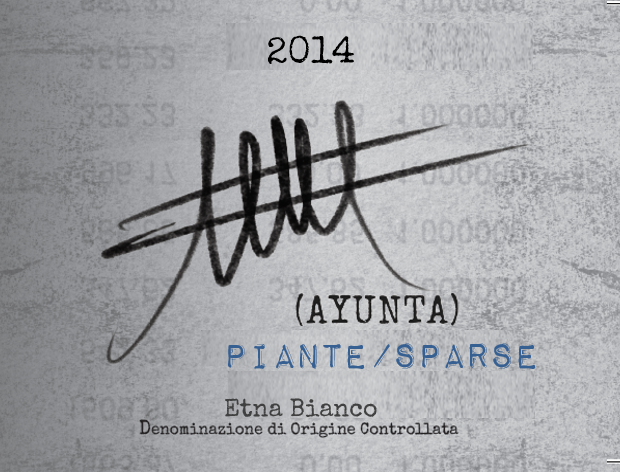 Organic. 90 % Carricante, 10% Catarratto and other indigenous varieties. Soil- volcanic. Altitude- 650 m average. Sourced from vineyards on the north slopes of Etna in and around Randazzo. . In Italian “PIANTE / SPARSE” literally means “stray-vines” . Ayunta doesn’t own a whole vineyards of white grapes, but in their old vineyards of red grapes there were traditionally planted some vines of white grapes. Over the years Ayunta has mapped these grapes and now farms them to be their own harvest. However, coordination ripening across this mixed back of vines is very difficult, so it is only produced in the best vintages when the grapes ripen just right. Hand-harvested, pressed, and spontaneously fermented in stainless steel. Aged in stainless steel on the lees before bottling. 330 cs produced.