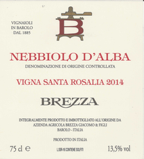 Certified Organic. Planted in 1952, Sant Rosalia is located on the border of Alba and Diano d’Alba. Vines are traditionals Guyot trellising with western exposure. Fermented and aged entirely in stainless steel, the wine is much more floral and elegant compared to Brezza’s superior barbera. This wine is always bottled under glass stopper.