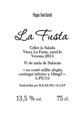 Biodynamic. 100% Xarello. The La Fusta Vineyard was planted in 1988 and sits on calcareous clay soils. The vineyard is not tilled, this is true minimal intervention agriculture. The objective is to have the highest variety life in the soil and create a natural balance within the environment. Manual harvest in 10 kg boxes, with selection of the grapes in the vineyard. Cold maceration then spontaneous fermentation in 50% second use chesnut barrels and 50% stainless steel. Aged for 6 months. Bottled with zero SO2.