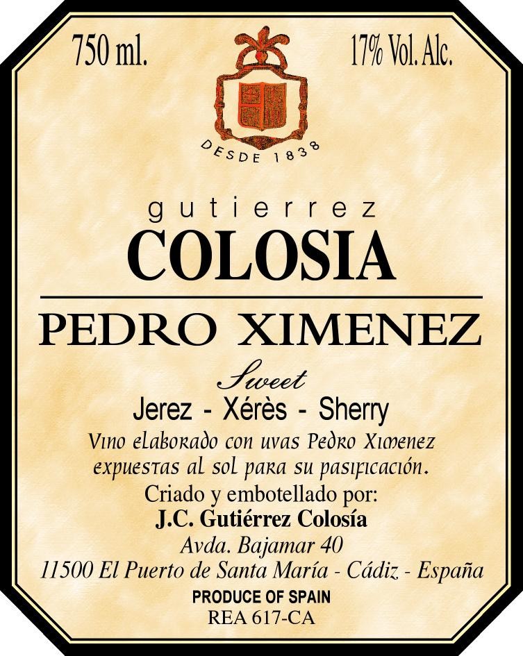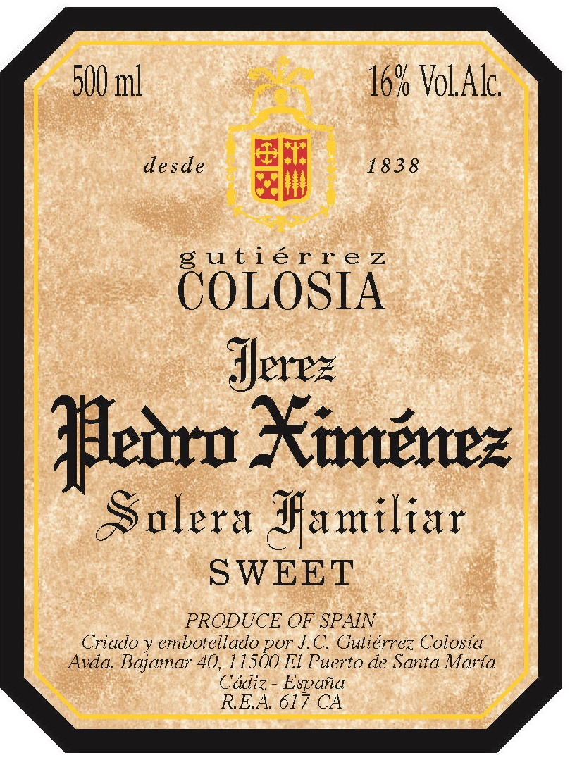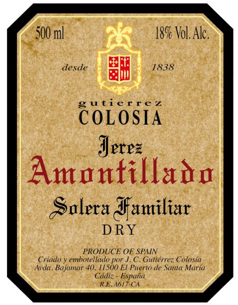 100% Palomino. Colosia’s Solera Familiar Oloroso averages a minimum of 35 years of age.  The Solera Familiar sherries represent the very oldest, and most limited, sherries produced by Gutierrez Colosia.  Only a few hundred bottles are bottled yearly to maintain the integrity of these soleras, which have existed continually since the mid 1800s.  “Dense notes of caramel and spice” – Peter Liem