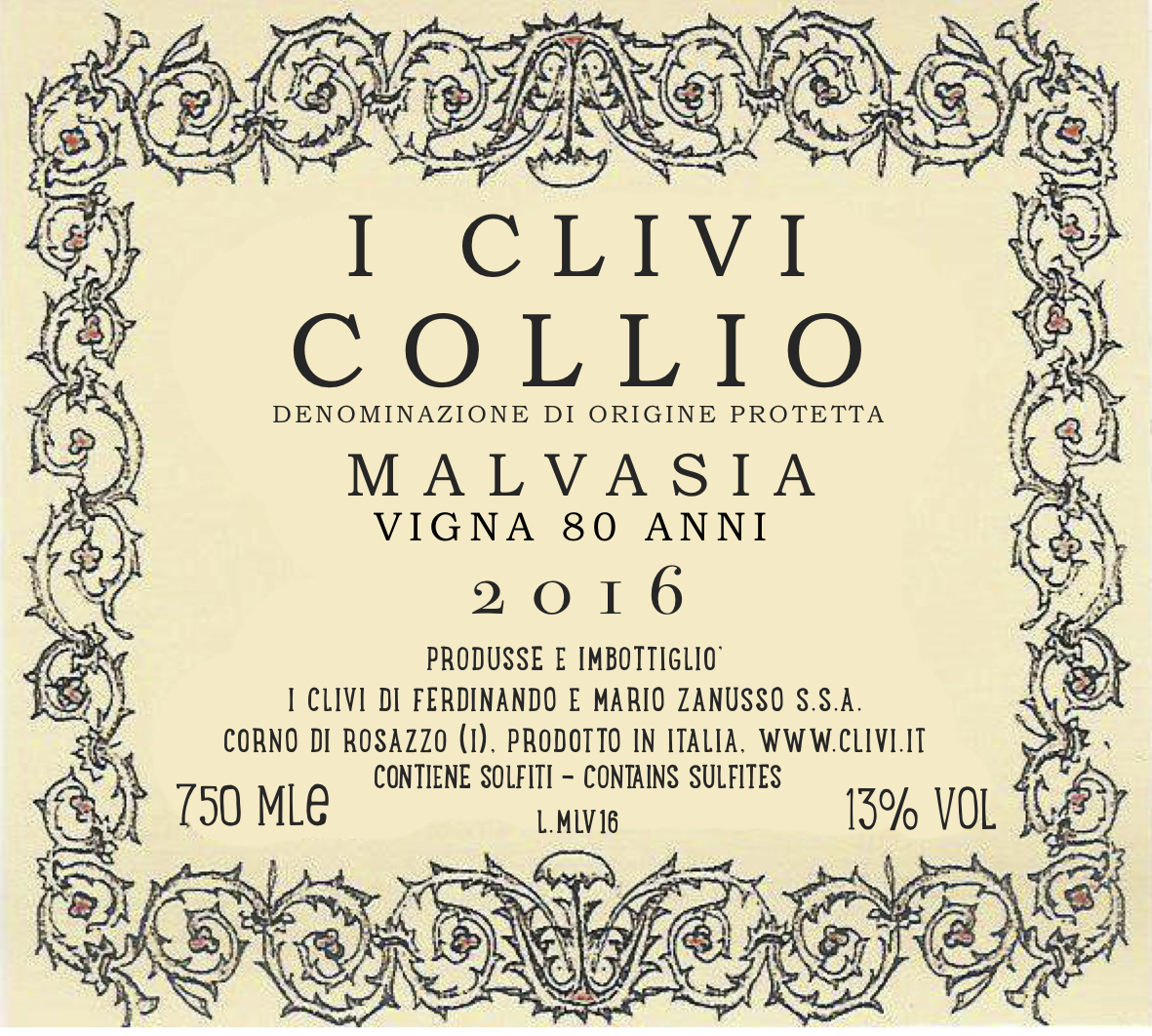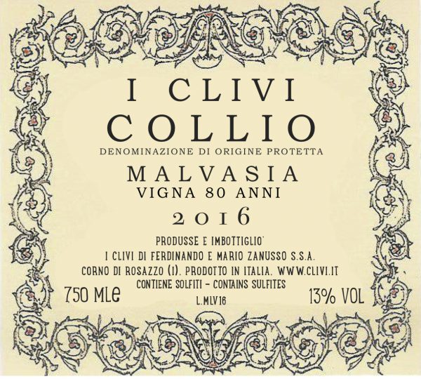 Certified organic. 100% Malvasia Istriana from marl and sandstone of Brazzano di Cormons, in the Gorizia province, along the Slovenian border. 80-year-old vines. Hand-picked whole berries, gently pressed in stainless steel, where it remains for an additional 12 months, post-fermentation. Lightly filtered. Mildly aromatic, marked by very gentle chamomile notes. Acidic yet delicate — a perfect example of balance. 250 cases produced.