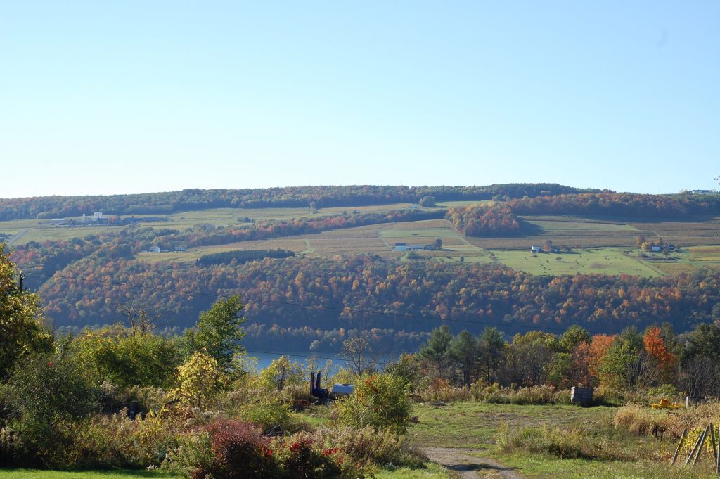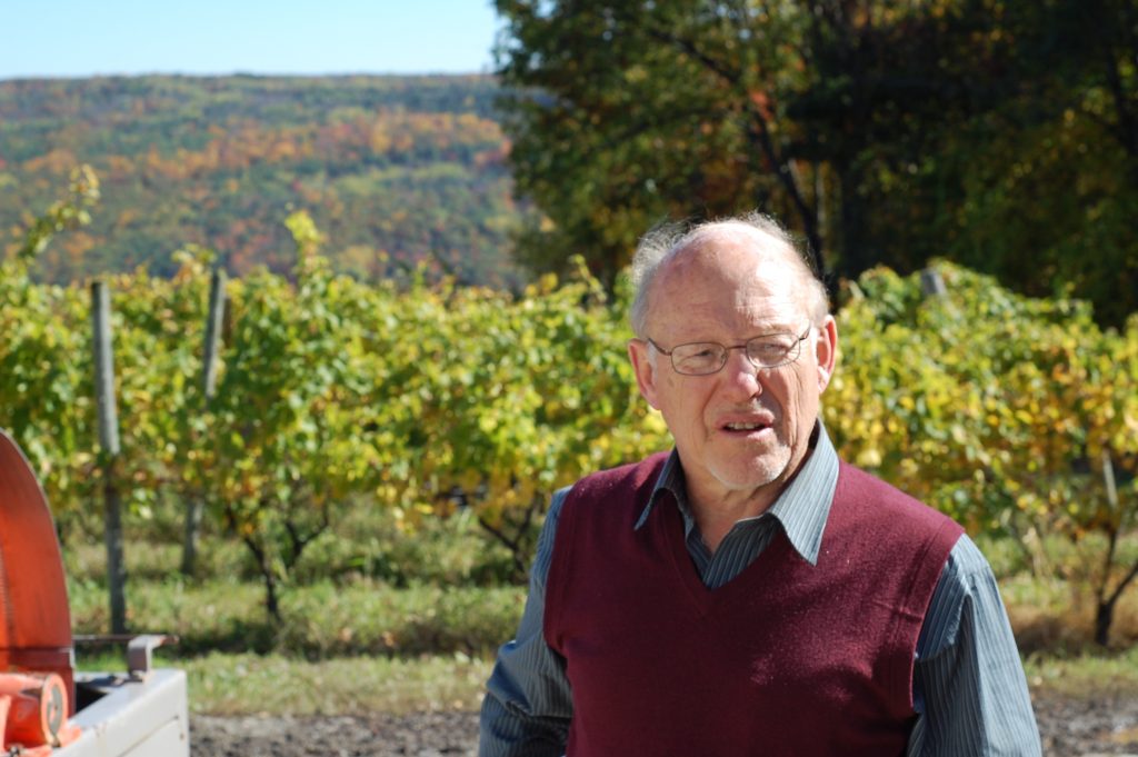 Keuka Lake Vineyards, owned by Mel Goldman, is a small estate winery that has earned a reputation as one of the elite producers in the Finger Lakes since Goldman started KLV in 1997. The estate controlled vineyards are situated on the southern slopes of Keuka Lake, the Y-shaped crooked lake, in the Finger Lakes region of Upstate New York. Keuka Lake Vineyards farms 53 acres of vines but cherry picks 20 acres for their own wines and sells the rest to neighboring wineries. Keuka Lake Vineyard’s focus is on their four distinct single vineyard bottlings of dry Riesling, but they also produce a benchmark example of Vignoles as well as Cabernet Franc, Pinot Noir, and Leon Millot. While KLV’s efforts are essential, it is the depth and size of the Finger Lakes that makes grape growing in the climate of New York State even possible. The summer heat retained by the lakes lengthens the growing season and acts to moderate the extreme cold temperatures of the vineyards in the winter. Come spring, the now frigid waters moderate the warming air temperatures, delaying bud break and lowering the risk of damage by frost. It is the interaction of this temperate climate with the soil and topography of the land surrounding Keuka Lake that gives these vineyard sites their unique terroir. The glacial till topsoils (mixture of glacially laid rocks, sand, silt, and clay) deposited on the lower slopes above Keuka Lake provide for the water drainage that is essential for vine balance and health. The subsoils are predominantly shale, which lends a distinct mineral edge to the wines. The slopes themselves allow crucial cold air drainage during the winter and maximize sun exposure over the growing season.
