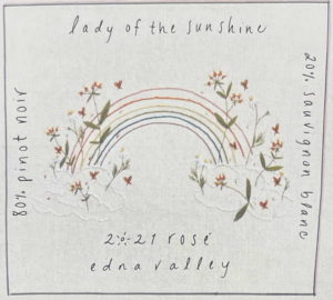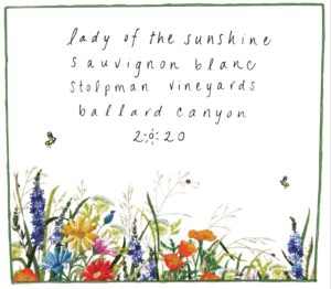 Lady of the Sunshine wines focus on organic and biodynamic farming. Her wines are a playful expression on California sites that are serious about farming, and are made with wild yeast, neutral oak, and are not fined or filtered. The foundation of Lady of the Sunshine starts in the vineyard, based on the mantra, “Know your farmer”. Gina currently makes Sauvignon Blanc from the Coquelicot Vineyard, an organic vineyard in the San Ynez Valley, and Pinot Noir from the Lindsley Vineyard, an organic vineyard in the Santa Cruz Mountains. In the winter of 2018, Gina started farming (full-time), the six and a half acre, Chene Vineyard, in Edna Valley, that sits four miles from the Pacific Ocean. She is currently farming and transitioning the vineyard to biodynamics and pursuing a Demeter certification status.