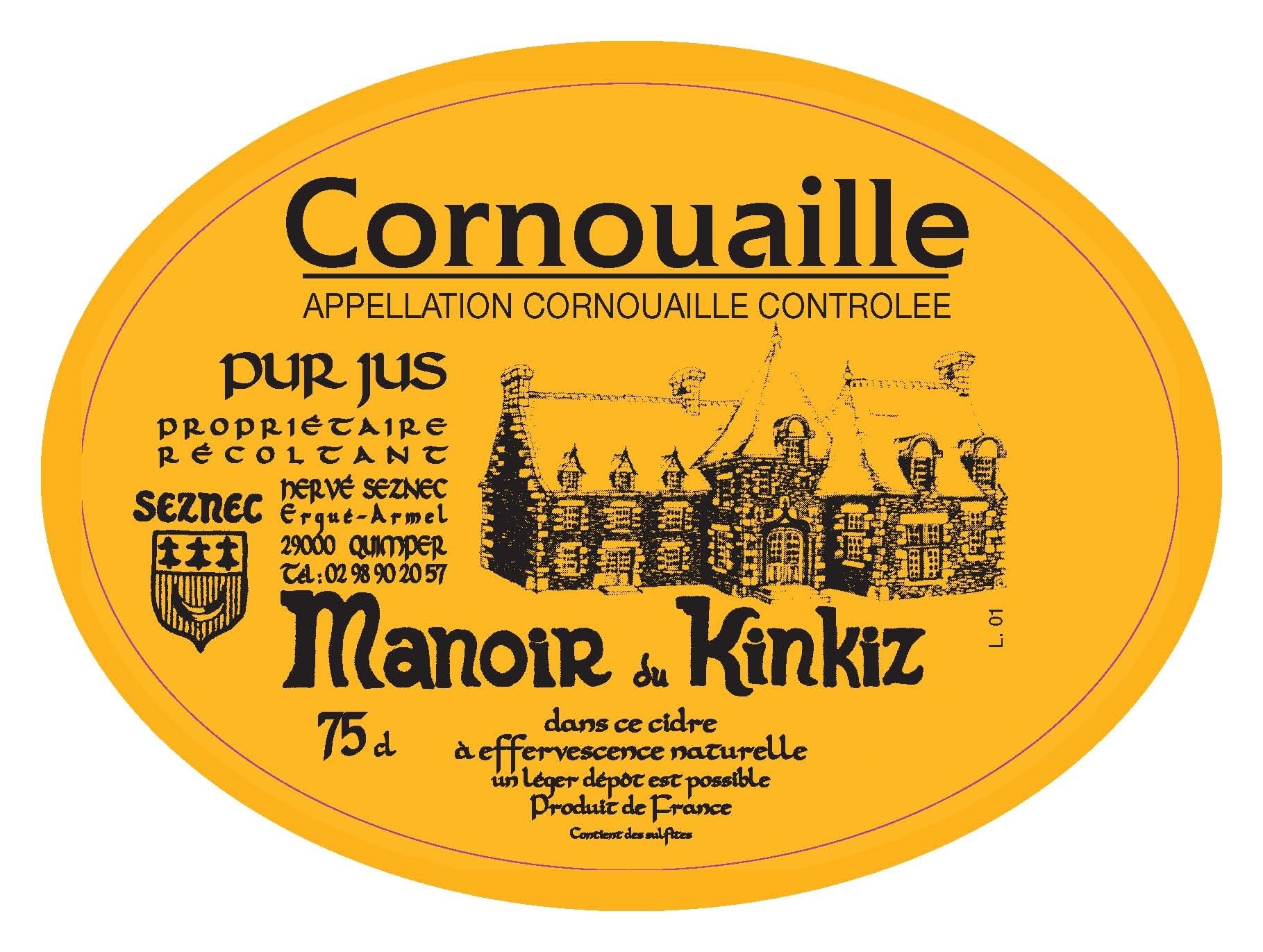 The region of Brittany, in northwestern France, has long been renowned for its cider. The name Brittany (Bretagne) was used by Celts who came from Great Britain and resettled in the area. Thus the distinction we see between “Great Britain” and la Bretagne, “Brittany”. The dramatic coastline of Brittany is lined with jagged granite cliffs. Inland from the coast the landscape softens to gentle rolling hills and fertile soil. This, combined with the cool maritime climate, and abundant rain, makes Brittany an ideal place to cultivate apples. The earliest traces of cider production in the region date back to the Romans. However, cider as we know it didn’t become a staple until the middle ages. Early in life Hervé Seznec already knew his calling─ to produce great cider. At the age of 19 he replanted his 30 hectares (74 acres) of orchards with nearly 25 varieties of apples. He had an intense desire to make naturally sparkling, high quality cider, from his own orchards. Hervé’s passion to improve and innovate, is abundantly evident in his cider. All the work at Manoir du Kinkiz is done with the utmost respect for nature. They use no herbicides in their orchards, and they allow indigenous plants and grass to grow between the trees. From the ladybugs that rid their orchards of insects, to the almost mystical darkness of the cellars where their AOP Cornouaille cider is aged in huge oak casks, Kinkiz is making a genuine attempt to return to the hands-on, artisan production methods of their ancestors.