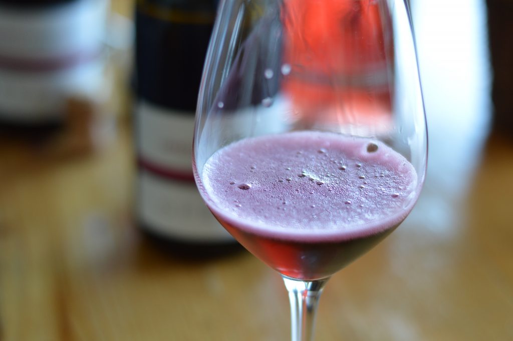 Certified organic. 95% Lambrusco Grasparossa, 5% Lambrusco Salamino. Soils are a mix of sand, silt, and clay in the hills around Levizzano Castelvetro and the vineyards have a southeast exposure. Hand-harvested, chilled, and crushed with 4-5 days of maceration to extract phenolics and moderate tannins. Fermentation at low temps for 6 months (the norm is 2-3 weeks!) in stainless steel using Charmat method. Kept in tank at low temps and then bottled to order. Amabile means “off-dry” but at just under 1% RS, this would likely be the driest wine from other Lambrusco houses.