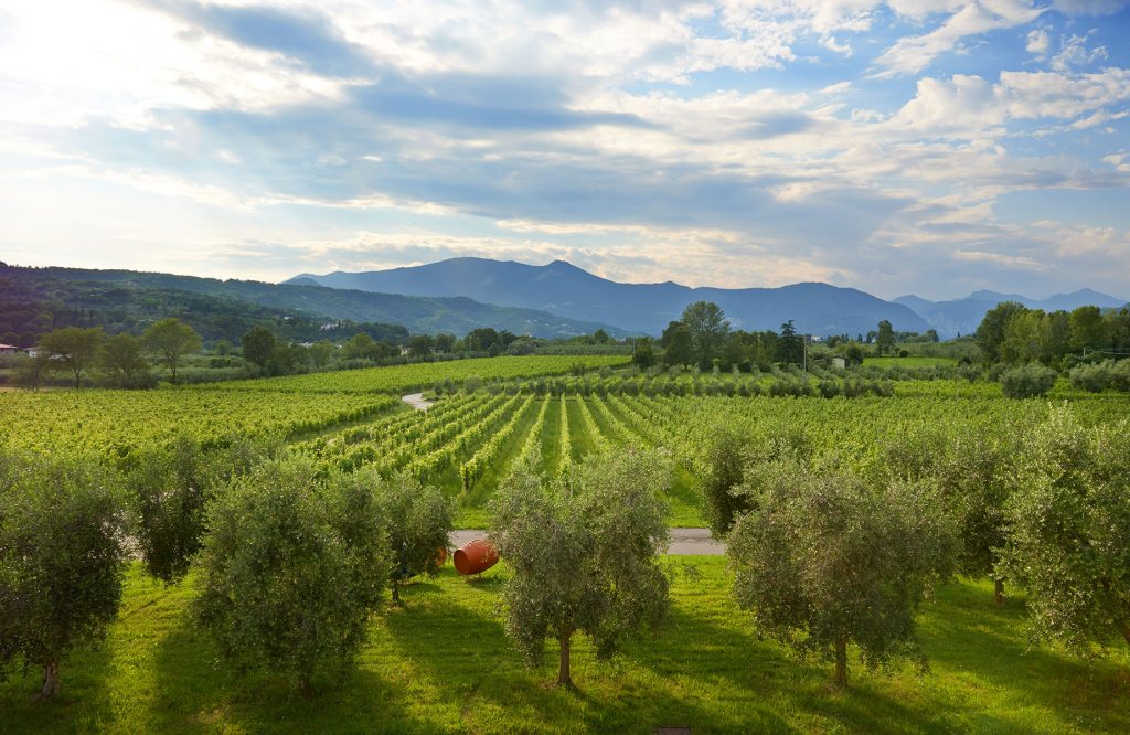 The winery itself is located in Valtènesi on the southeastern slopes of Lake Garda in Lombardy. Lake Garda, formed by glaciers at the end of the last Ice Age is Italy’s largest lake. Owing to its depth (over 1100 feet at its deepest) which acts as a natural heat reservoir, and the Alps to the north which protect from cold northern European winds, Garda has a uniquely warm climate for such a northern latitude. Olive trees, citrus, capers, and cactus are some of the more typically Mediterrean plants that thrive on the shores of the lake. The microclimate also permits grapes to thrive on all sides of the lake. In addition to Valtènesi on the southeastern side of Garda, Pasini San Giovanni also has vines in Lugana, located on the southernmost portion of the lake. The soils in Valtènesi are morainic in origin- the glaciers brought a mix of crushed rocks and pebbles of all sizes with them and deposited them on the slopes of the lake. In Lugana, a slightly flatter area, the soils have a higher percentage of clay. Additionally, both sides of the Lake produce Chiaretto- arguably Italy’s most historic and important rose. First created in 1896 by a Venetian with the help of French oenologists who recognized the warm climate as being ideal for rose, Chiaretto has been a rose only designation for more than a century.