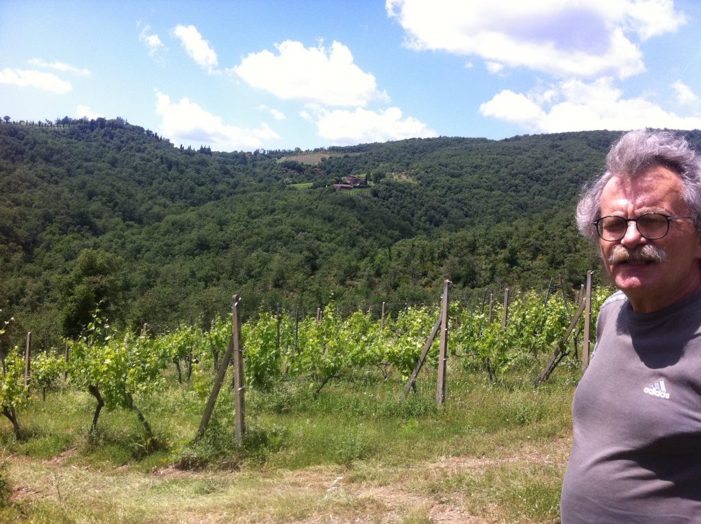 Pruneto is a nice old farmhouse on top of a hill surrounded by vineyards. Riccardo Lanza’s father bought the estate in the late 1960’s. Previously their family lived in Milan. “Only poor people lived here (at that time)” Lanza said. “The work was too hard.” His father was attracted to Pruneto through a friendship with legendary resident Sergio Manetti of neighboring Montevertine. Montevertine, at that time was making waves with 100% Sangiovese bottlings from this hill in the center of Chianti Classico. In 1980 Pruneto’s one vineyard worker retired and Riccardo has been doing it all himself ever since. The Pruneto estate is tiny: 3.5 hectares divided into just two vineyards, surrounded by forest. The older site very steep, west-facing and was planted in 1972. Lanza says he never has to worry about sunburned grapes from this field. His other parcel was planted in 1999, and is surrounded on all sides by forest. Lanza describes with wonder the experience of walking through the forest to this hidden vineyard. All his vines grow at a temperate 550 meters above sea level and are farmed organically. Pruneto’s vineyards are blessed with the famed galestro soils of Tuscany, a friable schist mixed with chalk that, along with the high altitude, lends a vibrancy to Pruneto’s wines, with bright acid and alcohols rarely exceeding 13%.