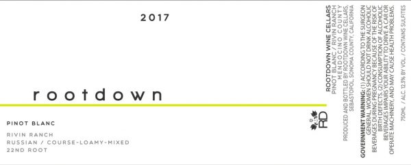 Organic. Planted in 1995, Rivin Ranch Vineyard (née Shrader Ranch) borders the Russian River on the south end of Ukiah in Mendocino County. Its Russian series soil is deep and well-drained, formed in alluvium from sedimentary rock. Once this Pinot Blanc hit the winery, it went direct to the press in order to maintain its natural freshness. The juice was cold-settled overnight and then two-thirds of it was racked into neutral barrel and the rest into stainless steel with native yeast. After fermentation, it is racked into stainless to rest until bottling in April. 180 cs produced.