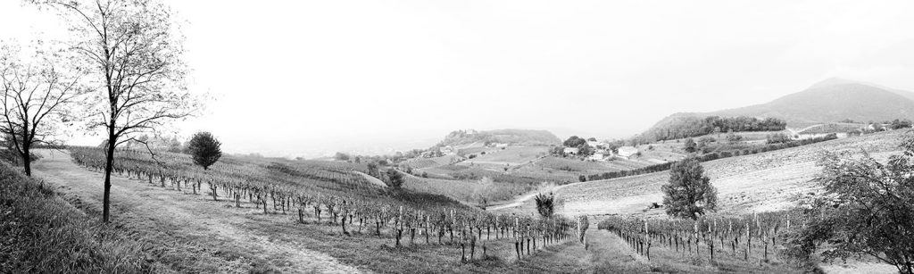 The Terregaie Winery, under the direction of Salvatore Lovo along with his wife Rita Ferasin, has been cultivating the vineyards of Vo’ in the western end of the Euganian hillsides for generations. It is here, since the 18th century, that their family has been rooted in the wine making traditions of the Veneto. The proximity to the Alps and the Adriatic allows both cool Alpine breezes and warm sea air weave together promoting perfect acidity and aromas in the grapes. This modern and dynamic winery produces high quality estate grown wines from the picturesque & highly favored hillsides of the Padova province. The winery was built in 2004 amidst the Lovo and Ferasin farm lands, which have been in their respective families for nearly 200 years. With about 50 hectares (120 acres) of southwest facing vineyards, they grow chiefly indigenous along with some international grapes like Pinot Noir.