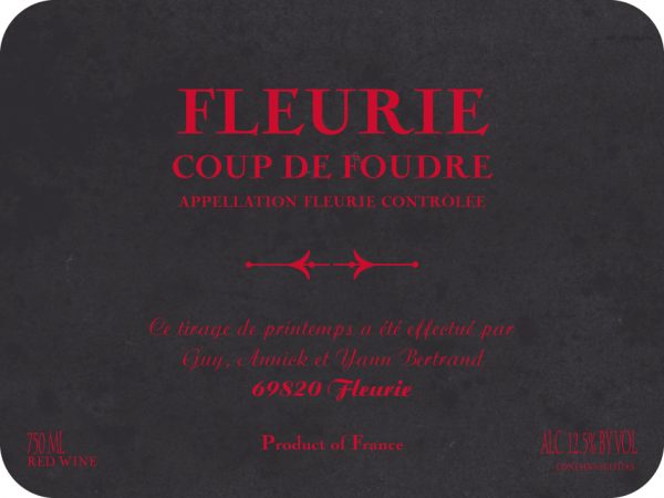 Organic. Parcel: Fond Chatonnes. Size: 0.75 ha. Vine Age: 60 years planted at high density (11k vines/ha). Soil: Granite over clay soil. Cold carbonic maceration between 10-12ºC for 20-25 days. Native yeast, with no sulfur added. 100% concrete tanks. Bottled unfiltered by gravity following the lunar calendar. 5000 btl produced. A retired vigneron in Fleurie offered to rent Yann this parcel after tasting his wines at the local café in the town center and being impressed. He told Yann they reminded him of the wines he drank when he was a young winemaker in Fleurie. The name is inspired from an old Chauvet cuvee.