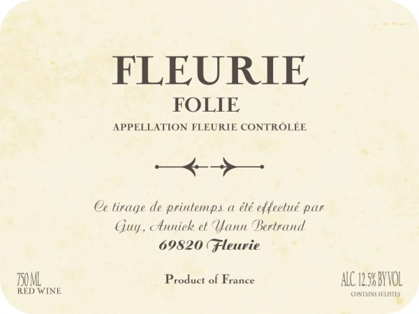 Returning to the Beaujolais, Yann began to learn from the incredible circle of producers that he never knew before – including well known people like Jean Foillard and Yvon Métras, as well as the behind-the-scenes guru Jacques Neauport (the quiet right-hand to the legendary Jules Chauvet). The entire Domaine Les Bertrands encompasses one 7.5 hectare vineyard, mostly in Fleurie, with a bit over the line in Morgon. The vineyard is loaded with ancient vines–the youngest are 30 years old, with the oldest vines at 110 years of age. His parents had been slowly moving in the direction of organic viticulture since taking over the family domaine in 1992; in 2013, the entire vineyard was certified organic. Additionally, Yann took on 1.5 hectare to farm on his own using biodynamic principles and created two new cuvées d’exception made in the neo-Beaujolais style of his well-known neighbors.