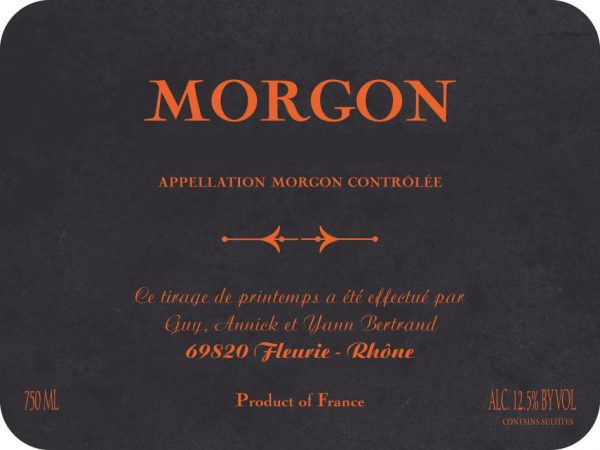 Certified organic. 100% Gamay from a 2 hectare plot of 60+ year old vines grown in pink granite sand soils – called Arene Granitique. Carbonic maceration with native yeast and no SO2 or other additions for 17-20 days. 12+ month ageing in used 225-liter barrels (at least 4 years old). Racked and bottled by gravity. Zero sulfur and no fining or filtering. 250 cs produced.